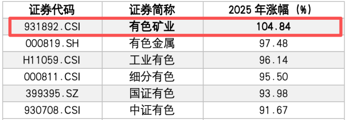 中证有色金属矿业主题指数作为高度聚焦有色金属产业链最上游——即矿产资源开采环节的指数配多多,在2025年资源价格上涨周期中,以104.84%年度涨幅领先主要同类指数。与此相印证的,紧密跟踪该指数的有色矿业ETF招商(159690)近一年以来涨幅显著达117.91%,展现鲜明配置价值。